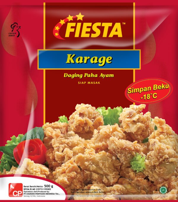 Fiesta Karage merupakan makanan instan berupa daging ayam goreng yang terbuat dari daging ayam pilihan yang dikemas secara higienis, sehat dan praktis. Ayam goreng ini dapat diolah sebagai menu masakan atau dicampur dengan bahan lainnya untuk disajikan kepada keluarga Anda.